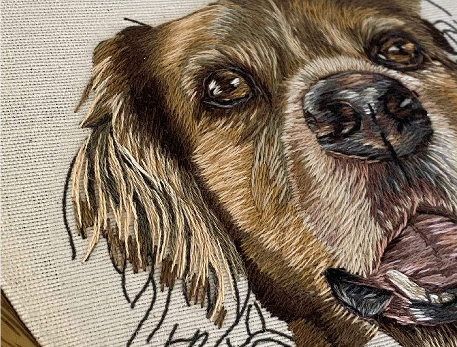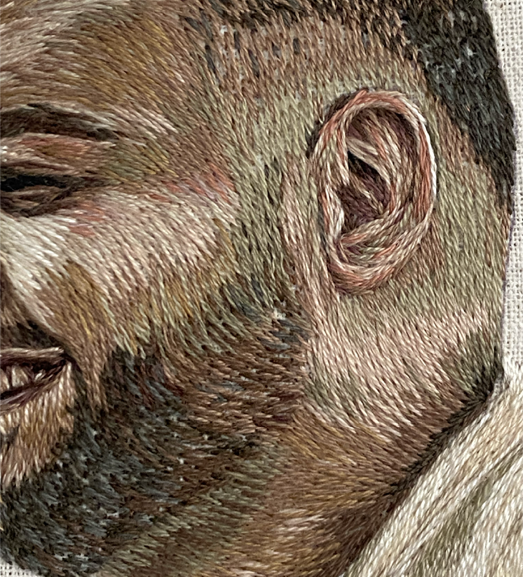 Exploration of mixed media technique combining acrylic painting and embroidery, year 2023.